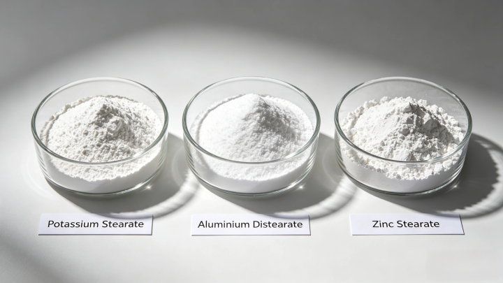 This page covers three core metal stearate products: Zinc Stearate, Aluminium Distearate, and Potassium Stearate — their chemistry, functional properties, applications, and selection guidance.